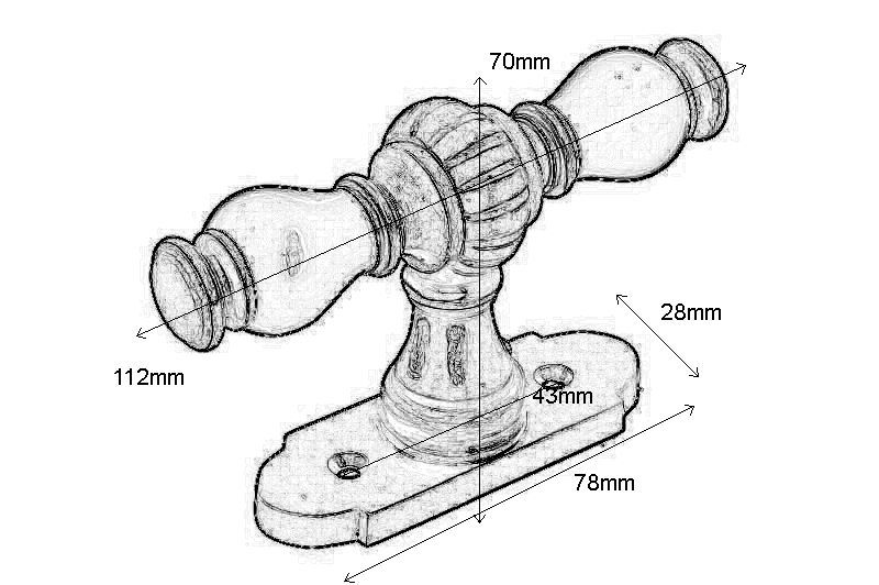 Fensterolive mit Rosette Messing poliert Ebenholz