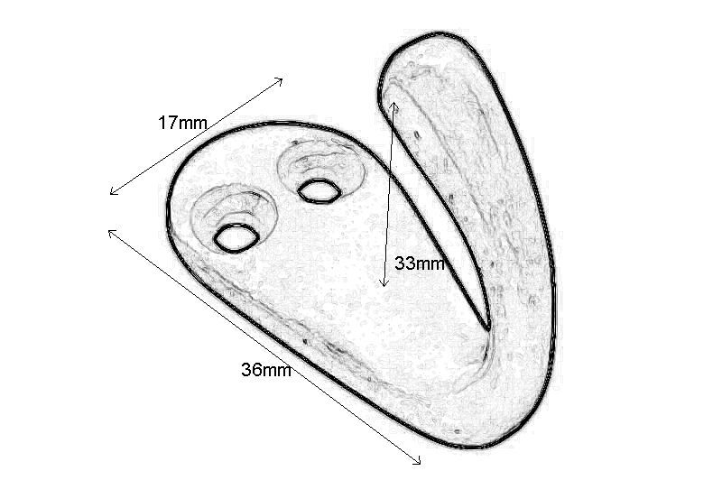 Haken Messing poliert. Tiefe 33mm, 17x36mm