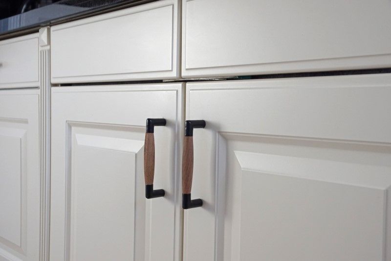 Küchengriffe Gusseisen schwarz teak 128mm Lochabstand