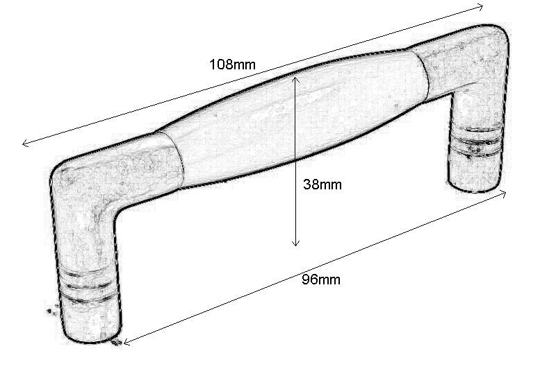 Küchengriffe Messing vernickelt Ebenholz. 96mm Lochabstand