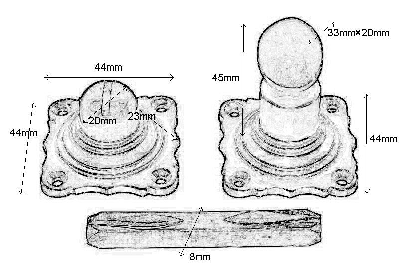 WC-Verschluss Messing poliert. Stiftmaße 8mm